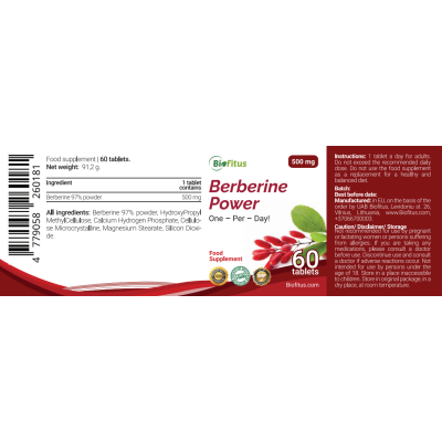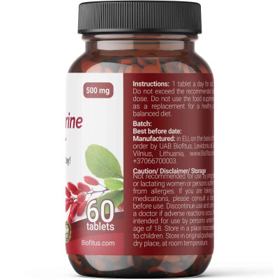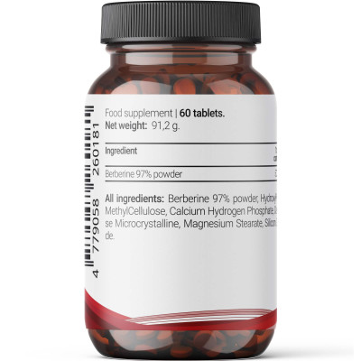 В упаковке содержится 60 таблеток, каждая из которых содержит 500 мг берберина, чистотой не менее 97%.