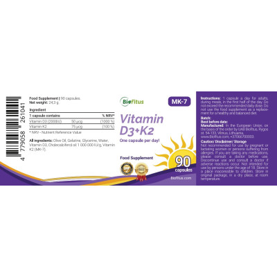 - 75 μg (100%) K2 vitamīna.