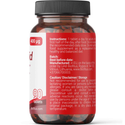 - 400 μg (200%) folijskābes (B9 vitamīns).
