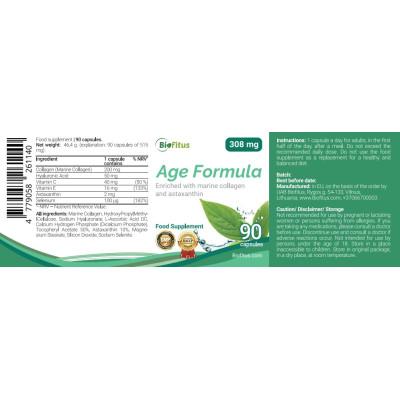 Формула против старения - это усовершенствованный комплекс для красоты, содержащий морской коллаген, гиалуроновую кислоту и антиоксиданты. Витамин С, входящий в состав, помогает поддерживать нормальное образование коллагена, необходимого для нормального функционирования кожи, а витамин Е и селен помогают защитить клетки от окислительного повреждения. Сбалансированная формула дополнена астаксантином - каротиноидом.