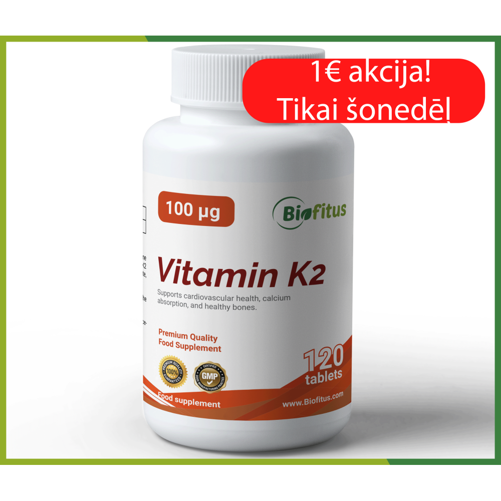 - Viena tablete satur pat 100 mikrogramus K2 vitamīna. K2 vitamīna avots ir menahinons!