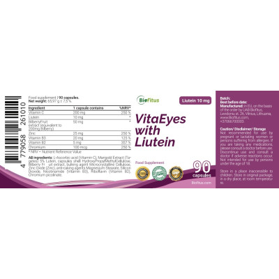 Содержащийся в составе лютеин является естественным компонентом сетчатки, а экстракт черники — источником растительных веществ. Кроме того, хром помогает поддерживать нормальный уровень глюкозы в крови.