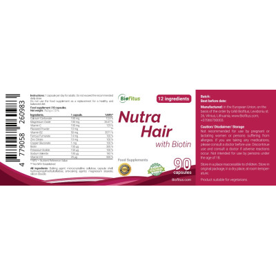 Uztura bagātinātāja kapsulas, kas satur kalcija karbonātu, magnija oksīdu, linsēklu eļļas pulveri, askorbīnskābi, riboflavīnu, dzelzs fumarātu, cinka citrātu, vitamīnu D3, vara glukonātu, nātrija selenītu, kālija jodīdu un B-biotīnu.