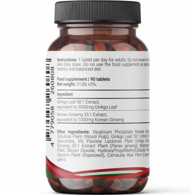 - Пищевая добавка с гинкго и корейским женьшенем.