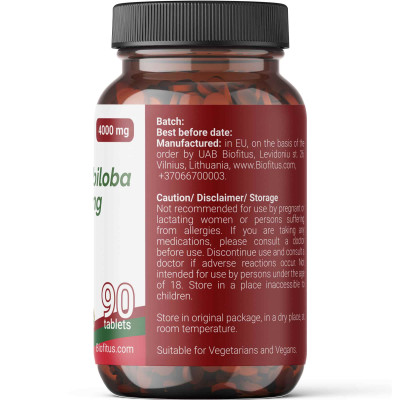 - Ginkgo Biloba ekstrakts (50:1) 60mg, kas atbilst 3000 mg