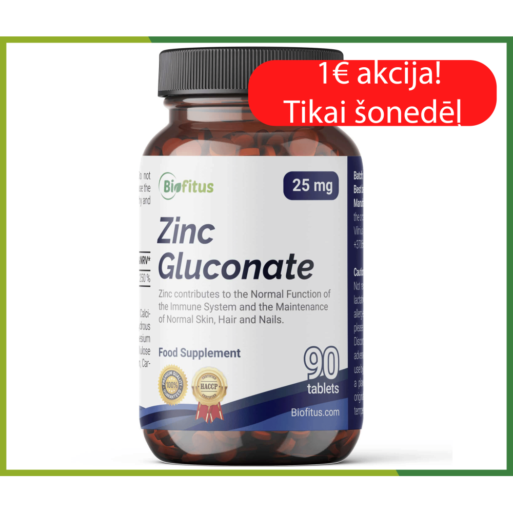 - Cinka forma – cinka glikonāts: tā ir viena no labāk absorbējamām cinka formām, pateicoties labai biopieejamībai.