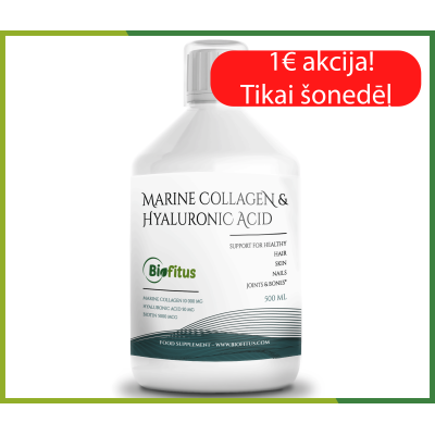 Biofitus šķidrais kolagēna uztura bagātinātājs – īpaši izstrādāts produkts, kas satur 10 000 mg hidrolizēta jūras kolagēna (I un III tips) un svarīgus vitamīnus.