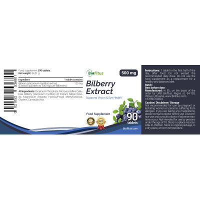 Sastāvdaļas. kalcija fosfāti, celuloze, melleņu (Vaccinium myrtillus) ekstrakts 4:1 (satur maltodekstrīnu), silīcija dioksīds, taukskābju magnija sāļi, hidroksipropilmetilceluloze, glicerīns, karnaubas vasks.